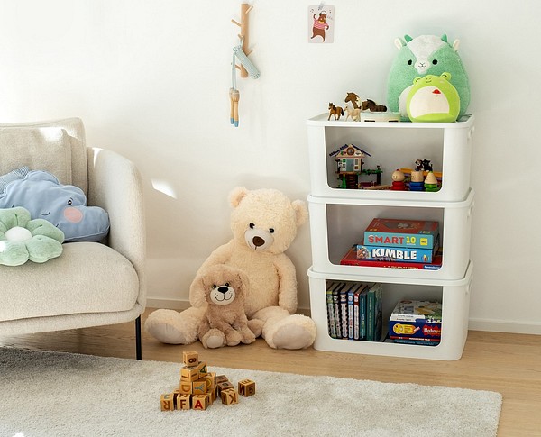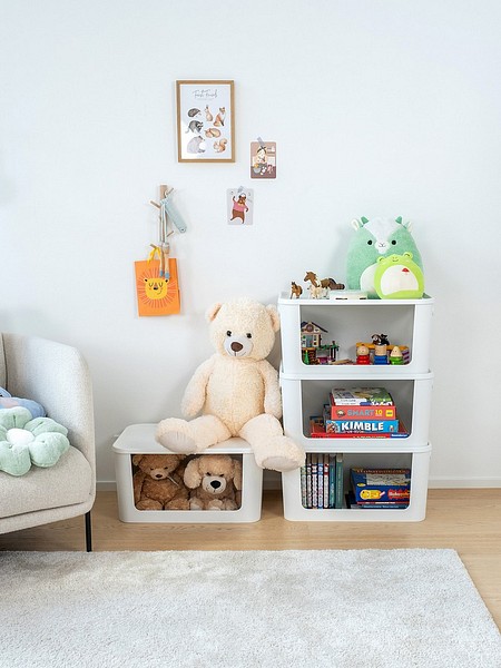 Le SmartStore Module est une solution de rangement polyvalente pour les objets du quotidien. Les boîtes peuvent être empilées pour former une tour pratique, et l’ouverture frontale permet un accès facile au contenu à tout moment. Le SmartStore Module offre la commodité d’une étagère traditionnelle, avec la flexibilité de modules individuels. Créez la solution de rangement parfaite selon vos besoins. Le conteneur spacieux de 55 L peut accueillir divers articles ménagers tels que des serviettes, des vêtements, des articles de toilette, des chaussures et des jouets. Les boîtes sont faciles à déplacer grâce aux poignées, simples à nettoyer, et conçues pour s’intégrer dans des intérieurs modernes. Elles s’emboîtent sans couvercle et s’empilent avec couvercle. Fabriqué dans l’UE à partir de plastique recyclé durable. Garantie de 10 ans.